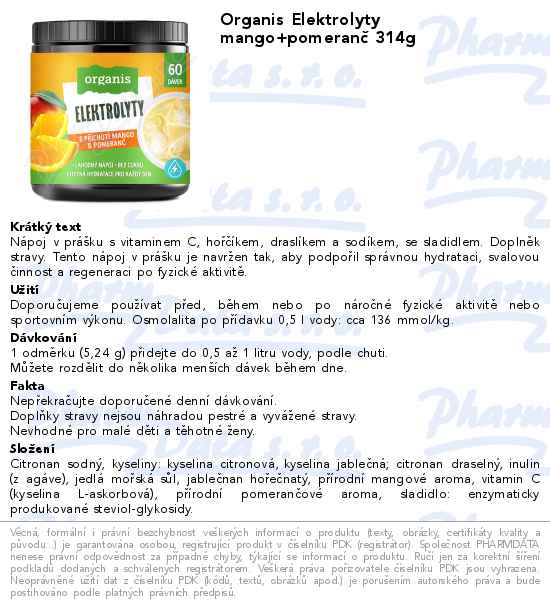 Organis Elektrolyty mango+pomeranč 314g