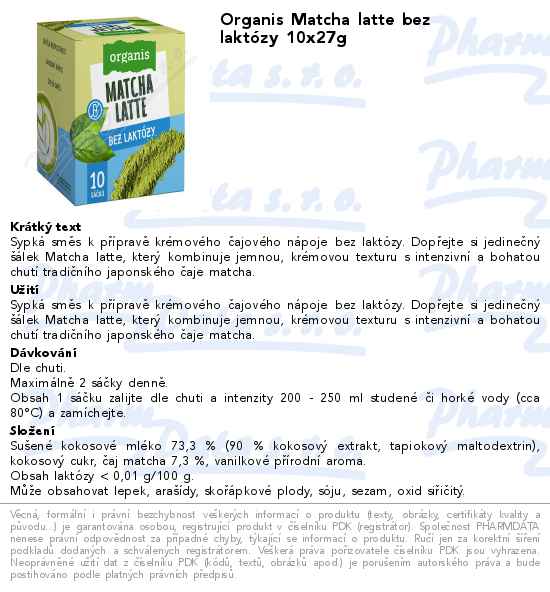Organis Matcha latte bez laktózy 10x27g