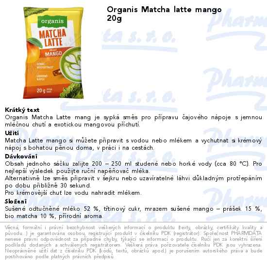 Organis Matcha latte mango 20g