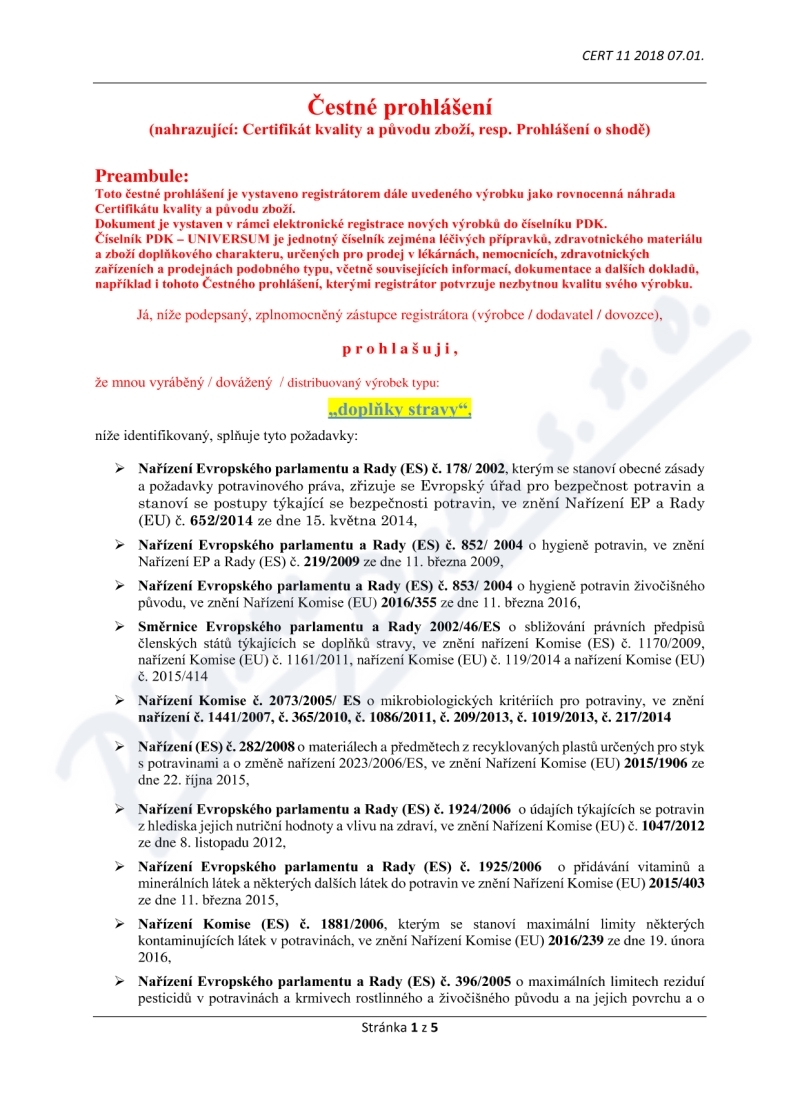 5 strany čestného prohlášení: strana 1, strana 2, strana 3, strana 4, strana 5,