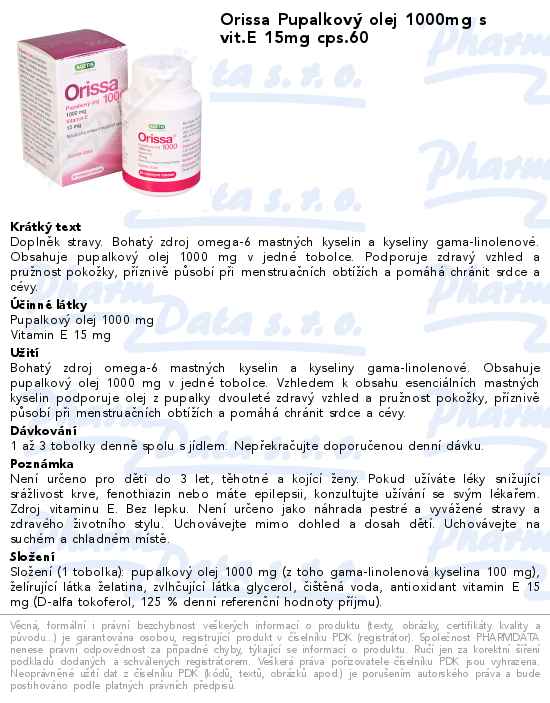 Orissa Pupalkový olej 1000mg s vit.E 15mg cps.60