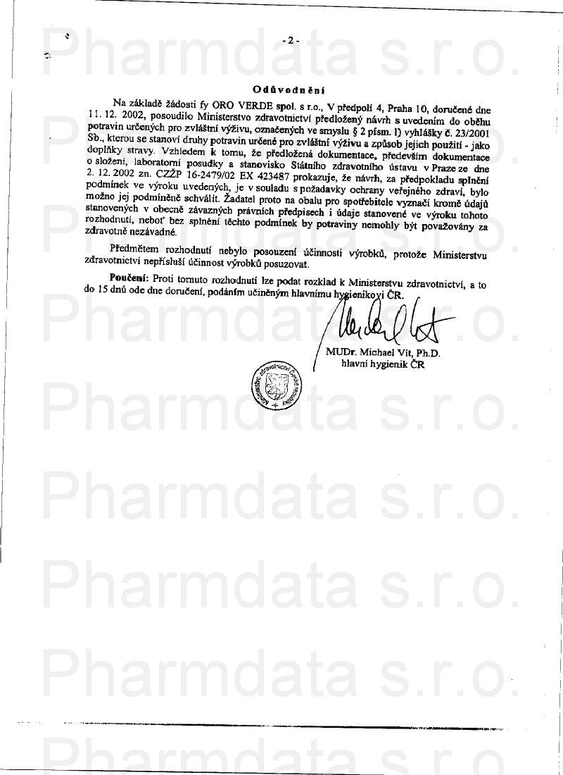 2 strany osvědčení hlavního hygienika: strana 1, strana 2,