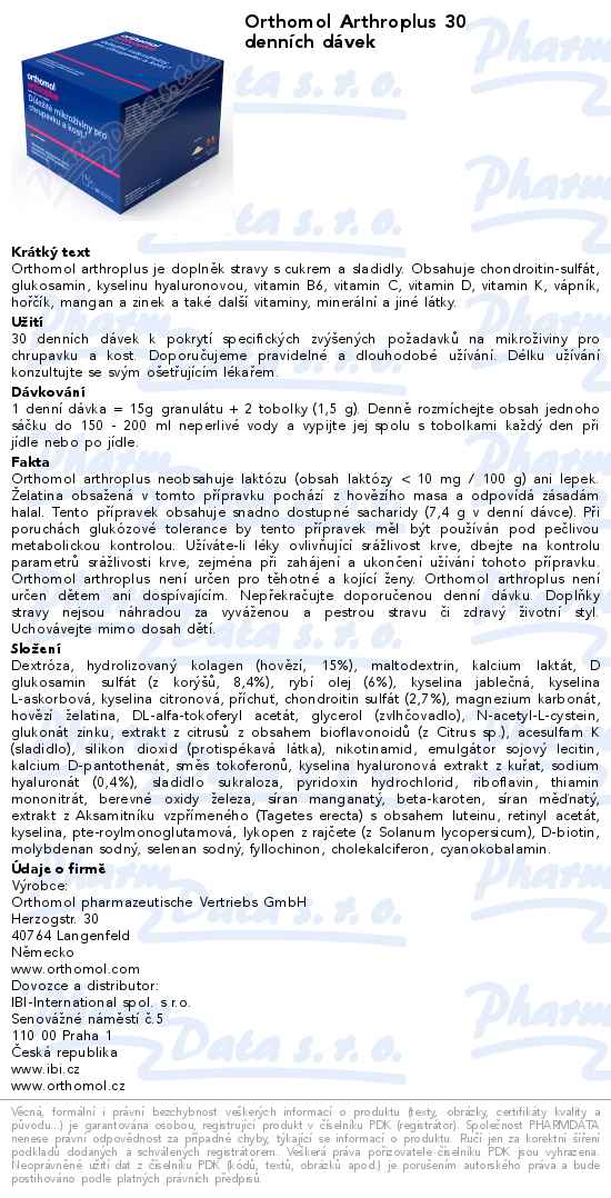 Orthomol Arthroplus 30 denních dávek