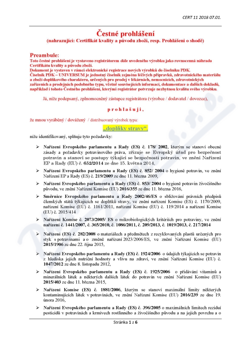 6 strany čestného prohlášení: strana 1, strana 2, strana 3, strana 4, strana 5, strana 6,