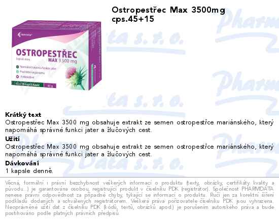 Ostropestřec Max 3500mg cps.45+15