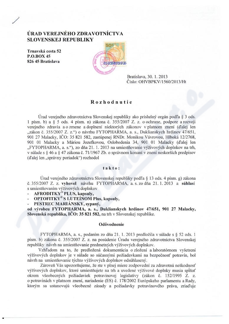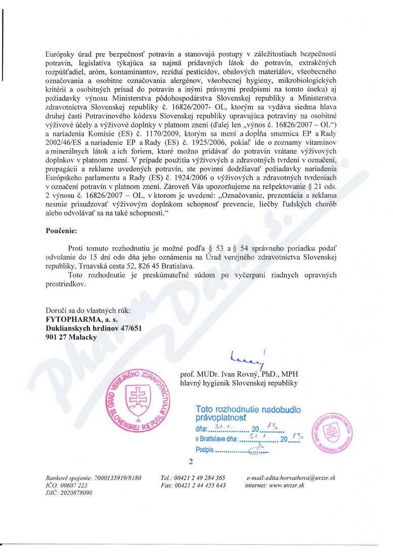 2 strany osvědčení hlavního hygienika: strana 1, strana 2,