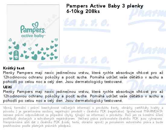 Pampers Active Baby 3 plenky 6-10kg 208ks