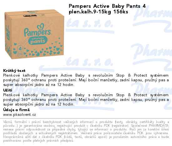 Pampers Active Baby Pants 4 plen.kalh.9-15kg 156ks