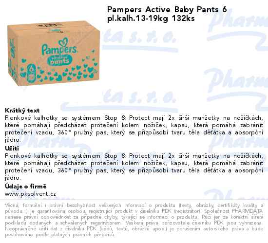 Pampers Active Baby Pants 6 pl.kalh.13-19kg 132ks