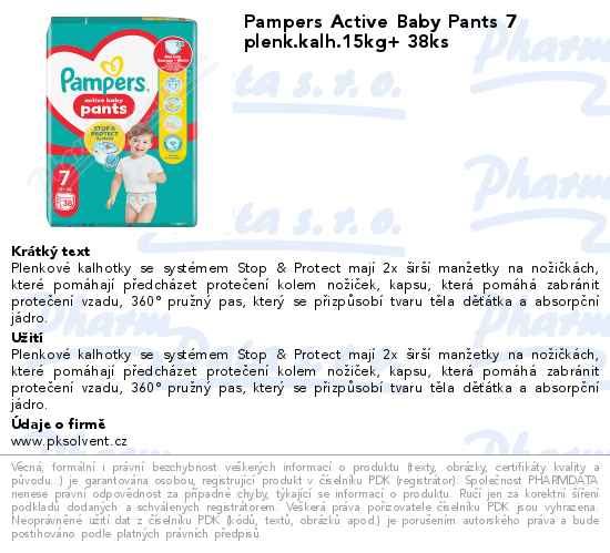 Pampers Active Baby Pants 7 plenk.kalh.15kg+ 38ks