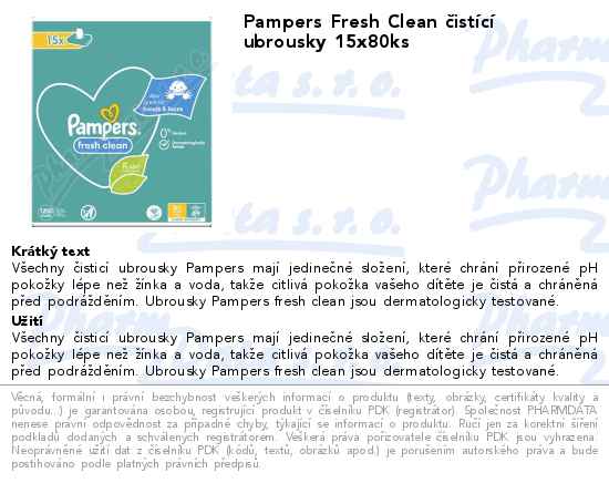 Pampers Fresh Clean čistící ubrousky 15x80ks