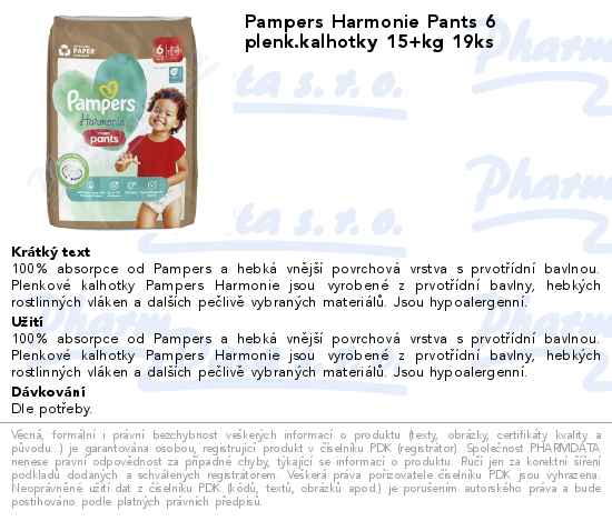 Pampers Harmonie Pants 6 plenk.kalhotky 15+kg 19ks