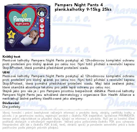 Pampers Night Pants 4 plenk.kalhotky 9-15kg 25ks