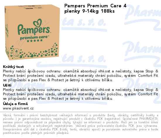 Pampers Premium Care 4 plenky 9-14kg 188ks