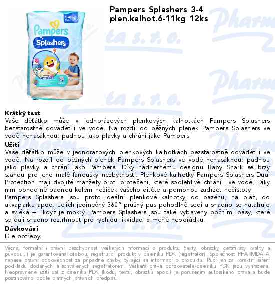 Pampers Splashers 3-4 plen.kalhot.6-11kg 12ks