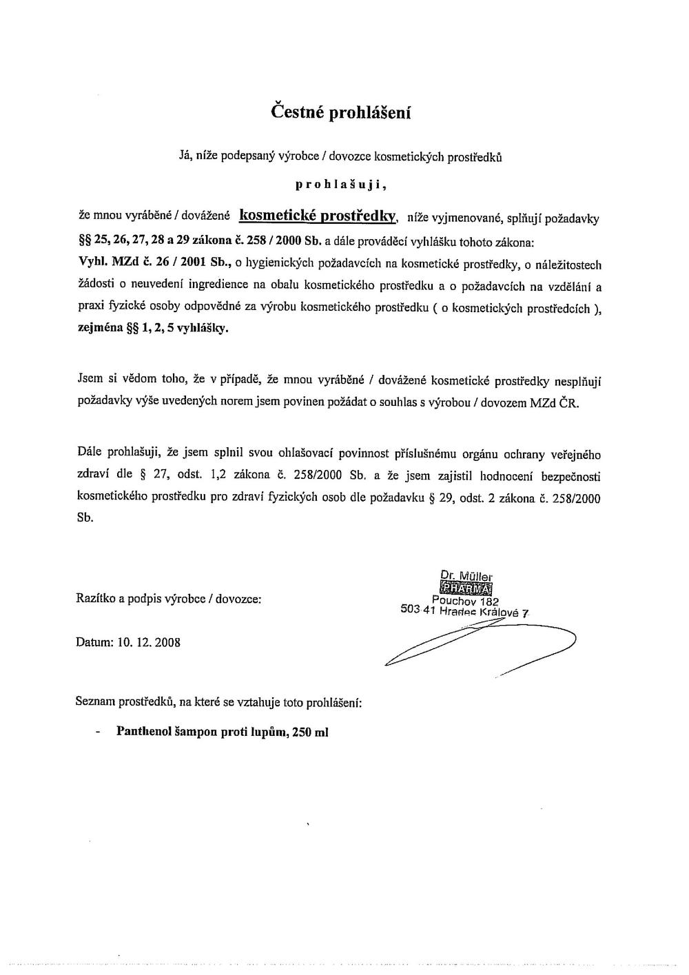 Výrobce: Dr. Müller Pharma s.r.o., Hradec Králové