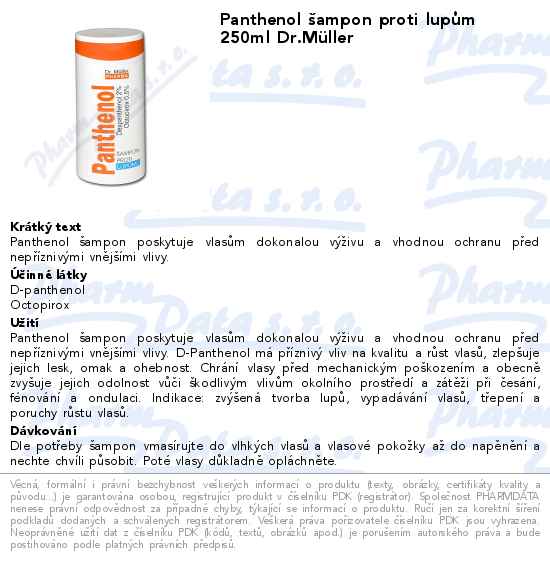 Panthenol šampon proti lupům 250ml Dr.Müller