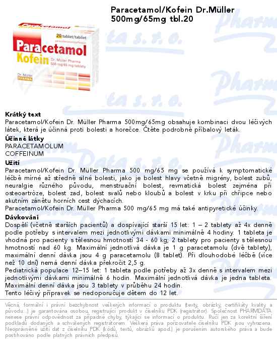 Paracetamol/Kofein Dr.Müller 500mg/65mg tbl.20