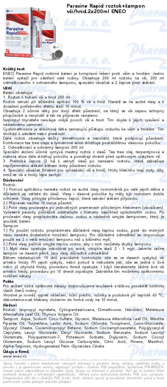 Parasine Rapid roztok+šampon vši/hnid.2x200ml ENEO