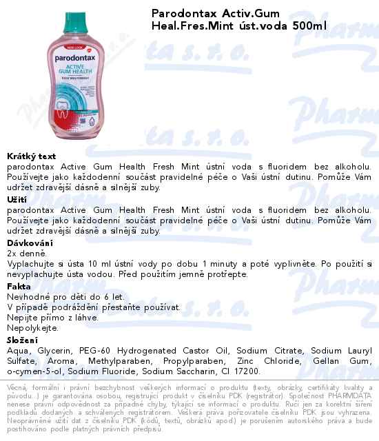 Parodontax Activ.Gum Heal.Fres.Mint úst.voda 500ml