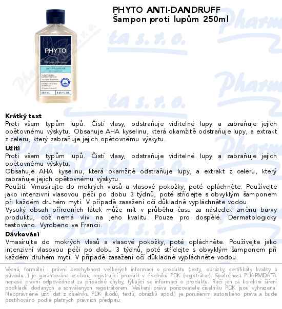PHYTO ANTI-DANDRUFF Šampon proti lupům 250ml