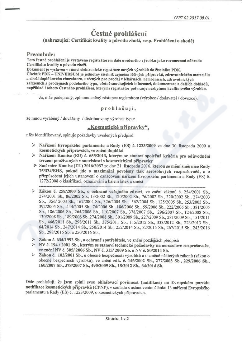 2 strany čestného prohlášení: strana 1, strana 2,