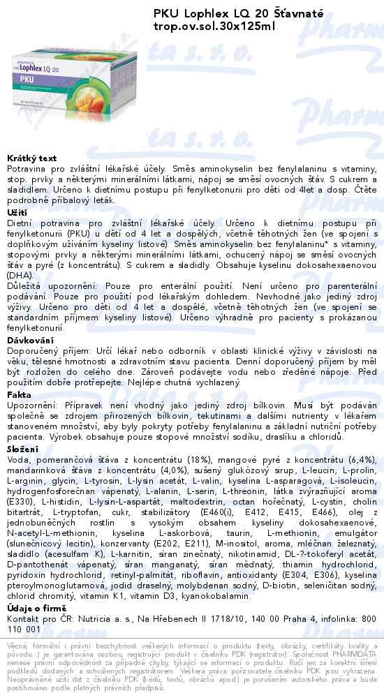 PKU Lophlex LQ 20 Šťavnaté trop.ov.sol.30x125ml