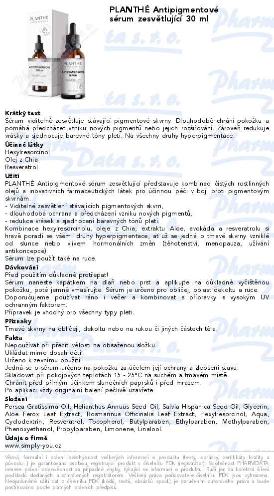 PLANTHÉ Antipigmentové sérum zesvětlující 30 ml