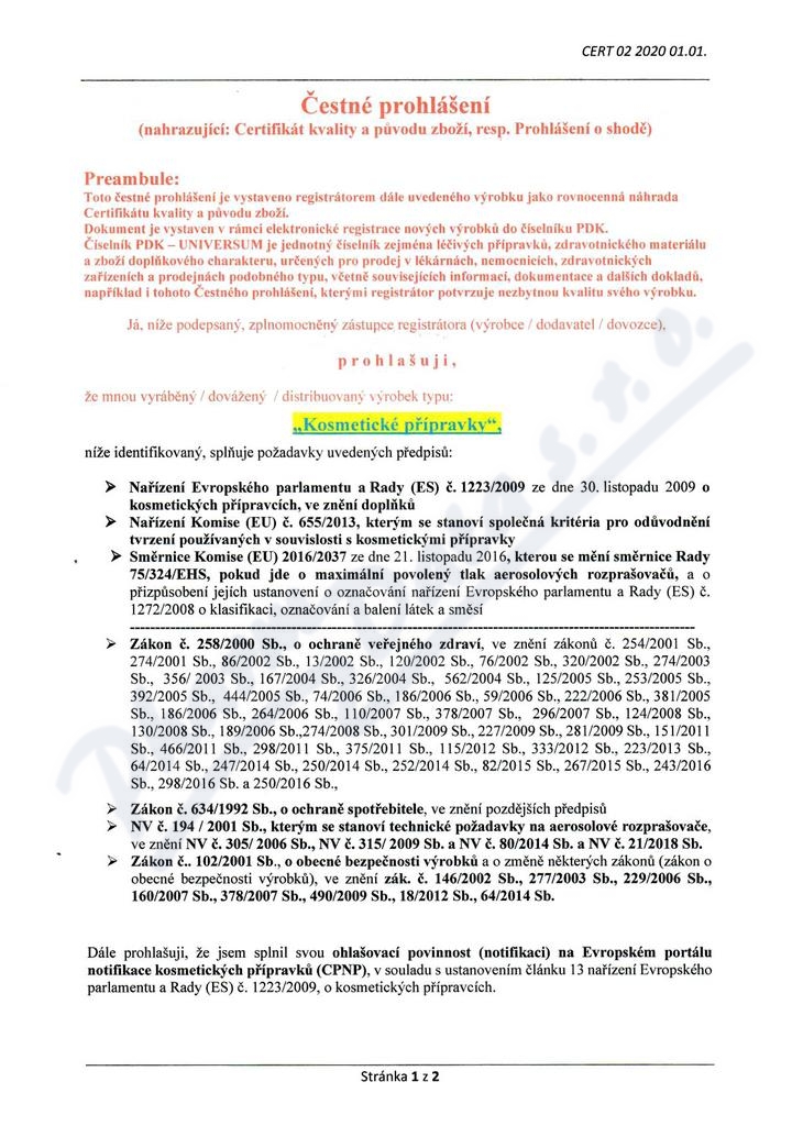 2 strany čestného prohlášení: strana 1, strana 2,