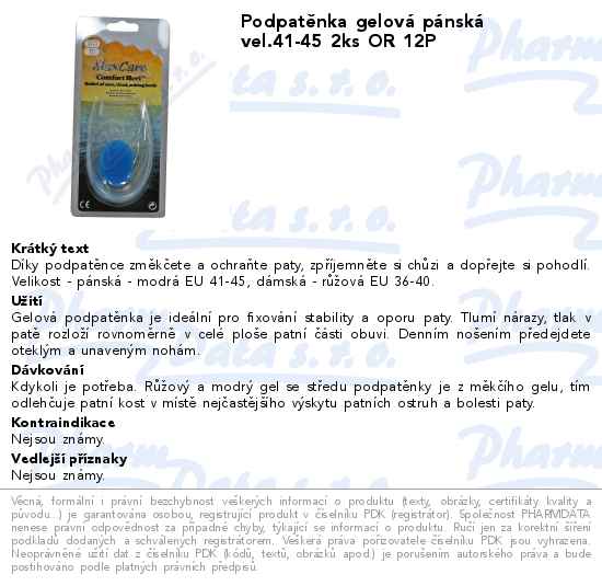 Podpatěnka gelová pánská vel.41-45 2ks OR 12P