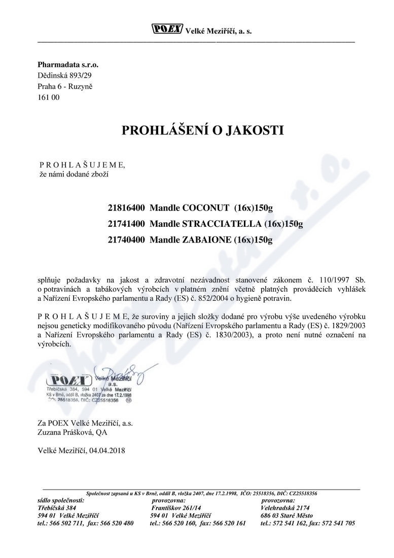 Výrobce: POEX VELKÉ MEZIŘÍČÍ A.S.
