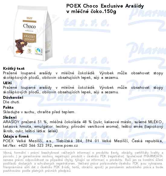 POEX Choco Exclusive Arašídy v mléčné čoko.150g