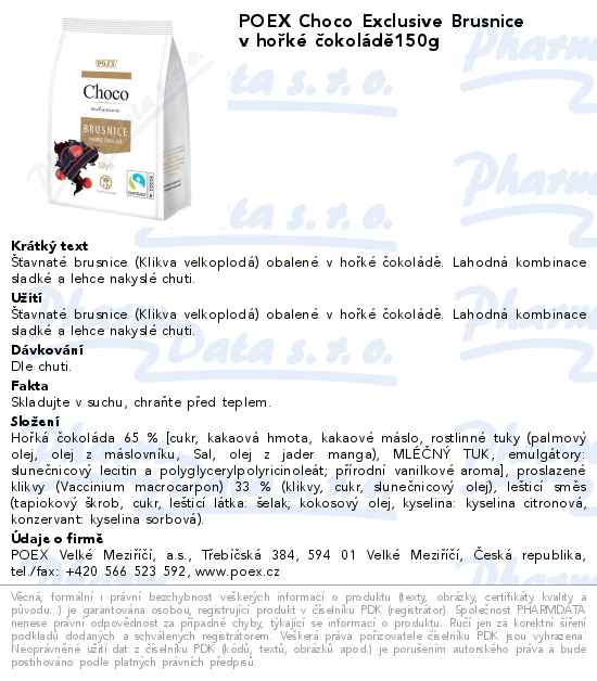 POEX Choco Exclusive Brusnice v hořké čokoládě150g