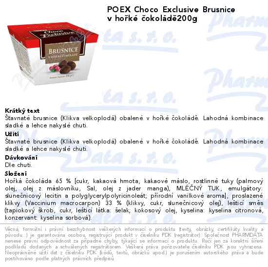 POEX Choco Exclusive Brusnice v hořké čokoládě200g