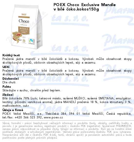 POEX Choco Exclusive Mandle v bílé čoko.kokos150g