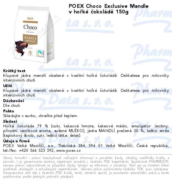 POEX Choco Exclusive Mandle v hořké čokoládě 150g