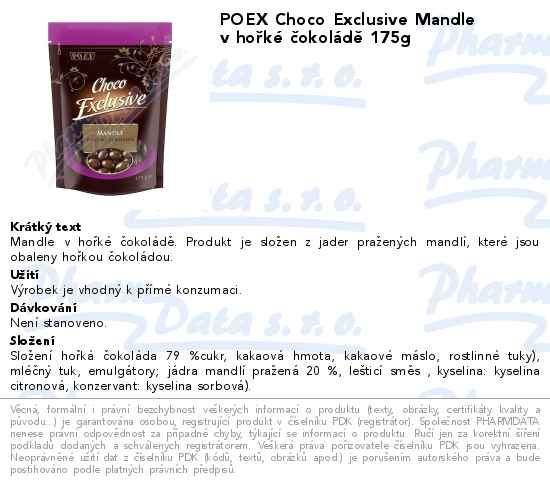 POEX Choco Exclusive Mandle v hořké čokoládě 175g