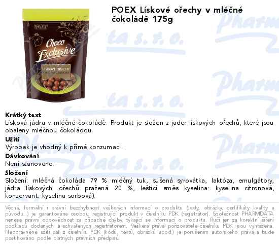 POEX Lískové ořechy v mléčné čokoládě 175g