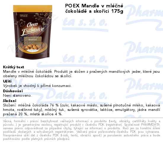 POEX Mandle v mléčné čokoládě a skořici 175g