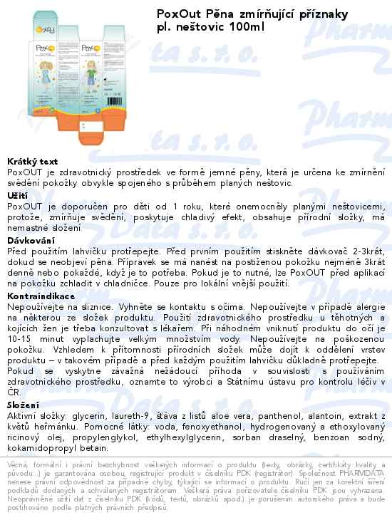 PoxOut Pěna zmírňující příznaky pl. neštovic 100ml