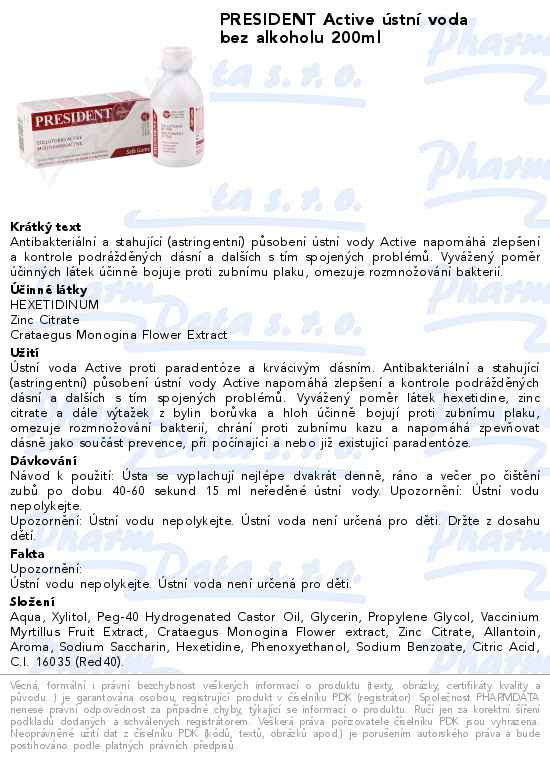 PRESIDENT Active ústní voda bez alkoholu 200ml