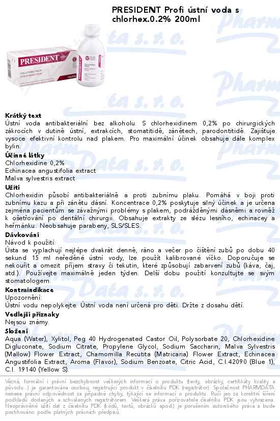 PRESIDENT Profi ústní voda s chlorhex.0.2% 200ml