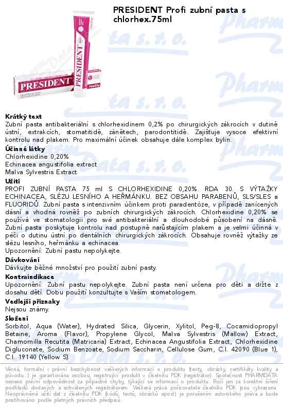PRESIDENT Profi zubní pasta s chlorhex.75ml