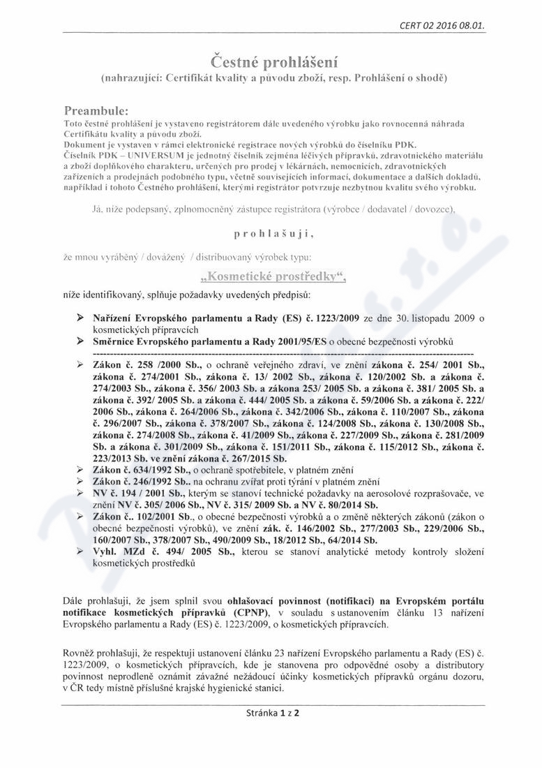 2 strany čestného prohlášení: strana 1, strana 2,