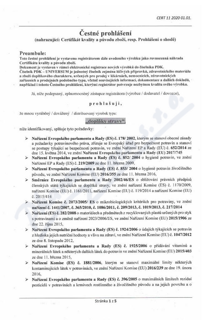 5 strany čestného prohlášení: strana 1, strana 2, strana 3, strana 4, strana 5,