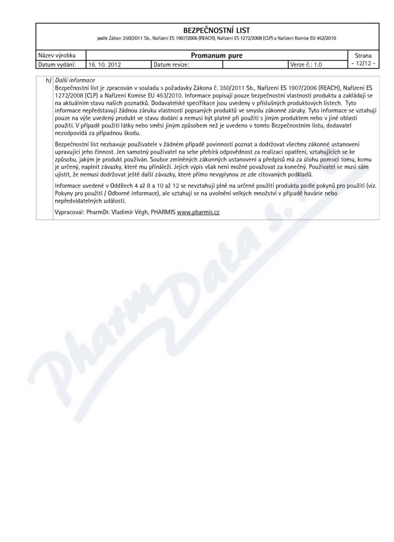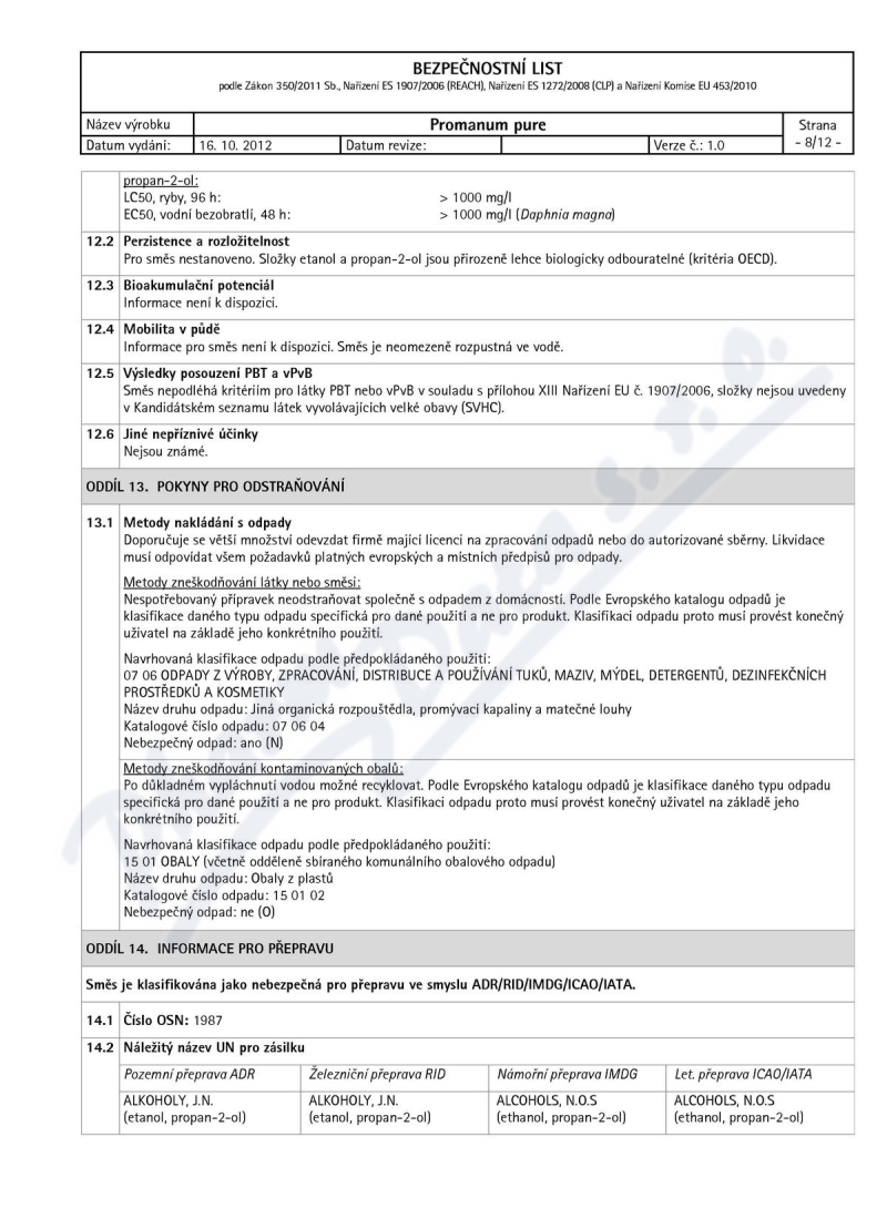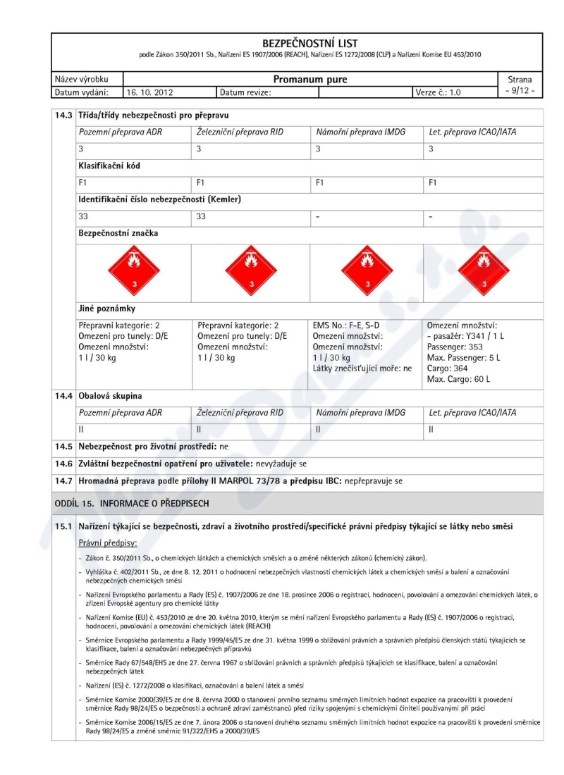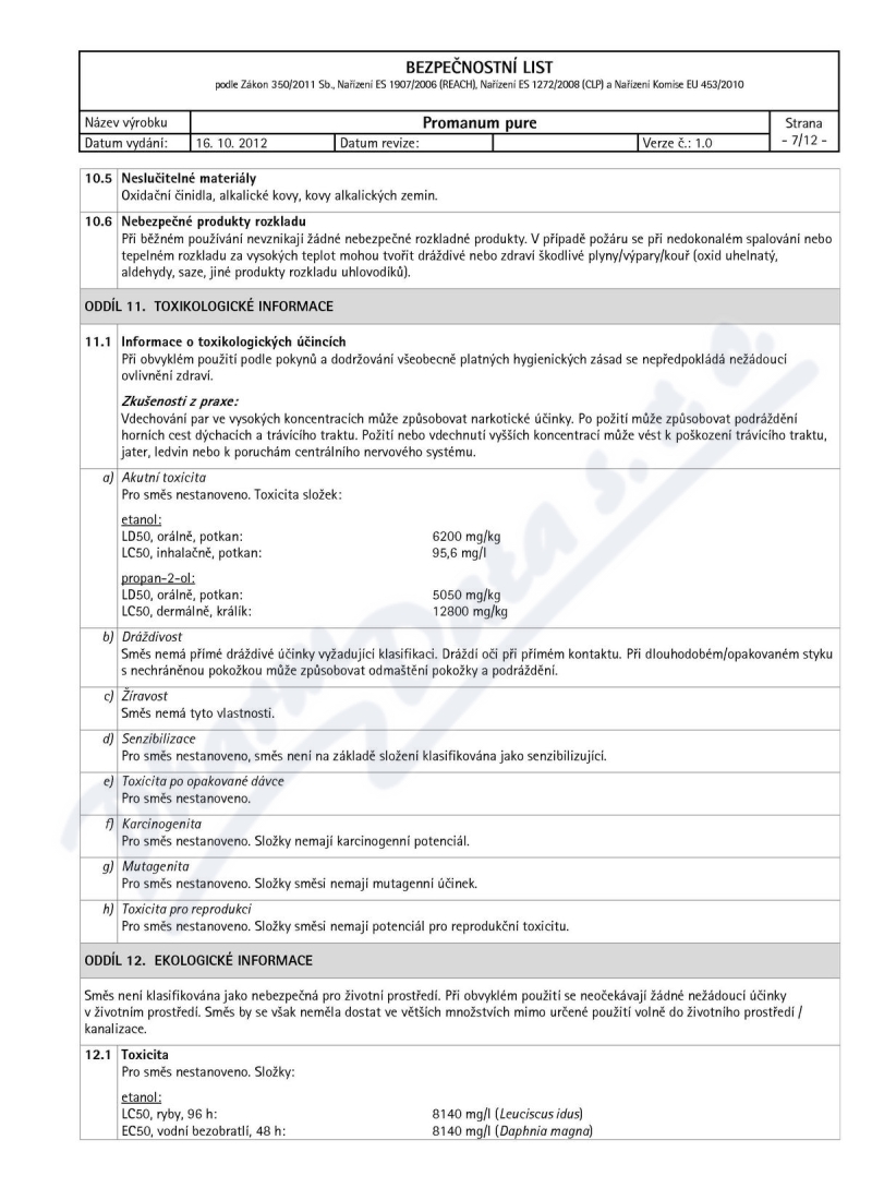 12 strany bezpečnostních listů: strana 1, strana 2, strana 3, strana 4, strana 5, strana 6, strana 7, strana 8, strana 9, strana 10, strana 11, strana 12,