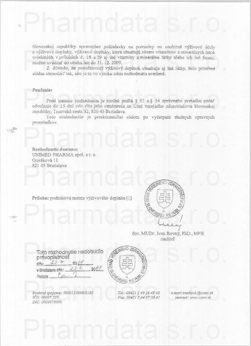 2 strany osvědčení hlavního hygienika: strana 1, strana 2,