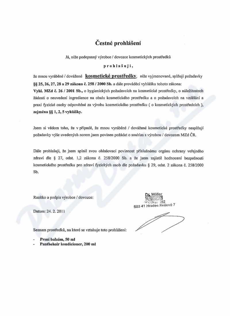 Výrobce: Dr. Müller Pharma s.r.o., Hradec Králové