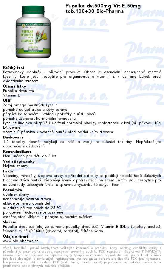 Pupalka dv.500mg Vit.E 50mg tob.100+30 Bio-Pharma