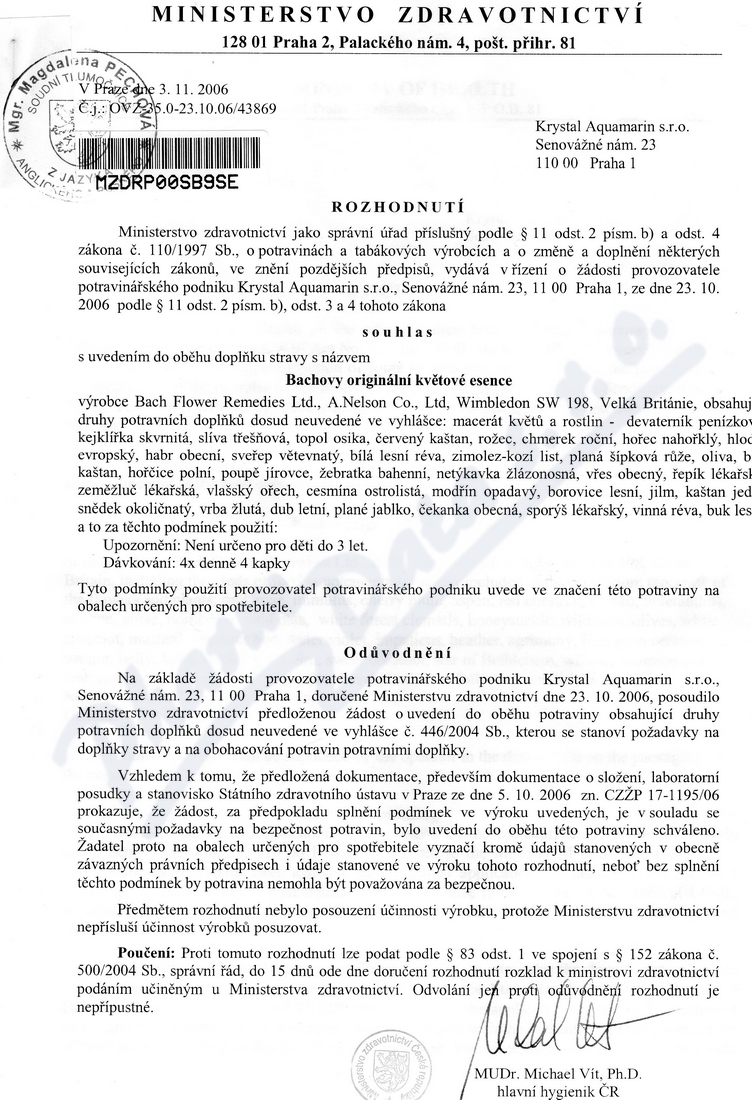 osvědčení hlavního hygienika